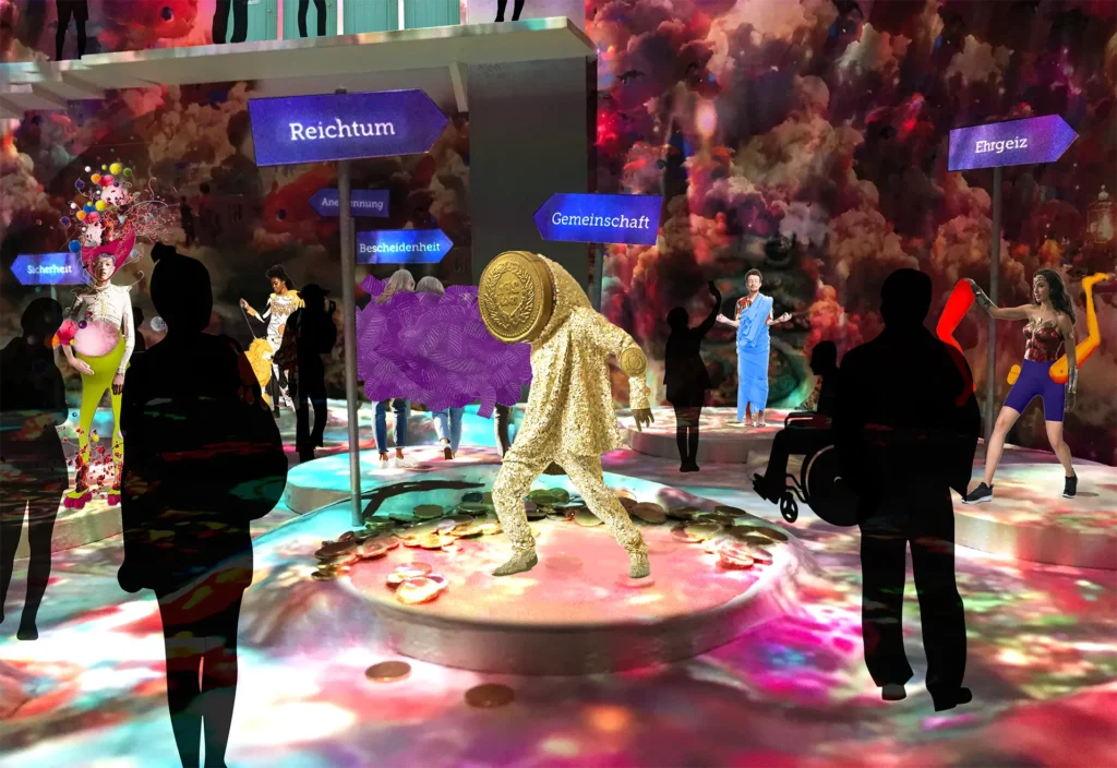 Wortwörtlich halten die personifizierten Werte die Besuchenden an, sich ins Bewusstsein zu rufen, was ihnen wirklich wichtig ist.